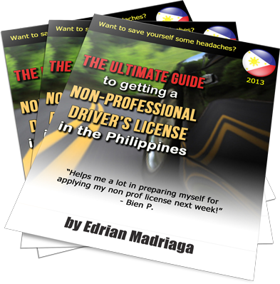 Once upon a time, it was hard to get a non-professional driver's license without paying thousands to fixers. But now, you can do it yourself...saving your more time & money!BENEFITS:Stop trying get a license without knowing where you're headed...as you'll likely end up dealing with a fixer!Tips & tricks so you can get your driver's license within the same dayFEATURES:Step-by-step, easy to follow guidePrintable format so you can bring it anywhereComplete with Frequently Asked Questions, & ChecklistsTESTIMONIALS"Hi Edrian! Helps me a lot in preparing myself for applying my non prof license next week! i just finished my driving school yesterday and i’m hoping to pass all the test in LTO!!!! thanks and God bless!"